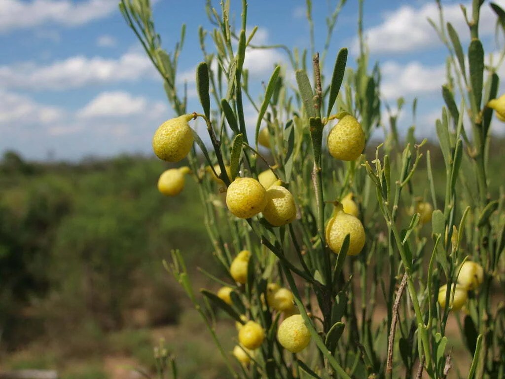 | Size of Plant: Small tree Edible Part: Fruit Suggested use in cooking: Strong citrus flavor, much more so than a typical lime or lemon. Cooking & preserves. Fun Fact: Desert lime trees laugh in the face of heat and drought! and is prized for its sharp, refreshing taste Traditional Use: An important food source for Indigenous Australians, who ate it whole and used it to make cordials, jams, and sauces. It was also valued for its thirst-quenching properties and for its unique, intense citrus flavor in a variety of sweet and savory dishes. Modern uses draw heavily on these traditional methods, including making marmalades, pickles, and other products, and it is also now used in cosmetics. |